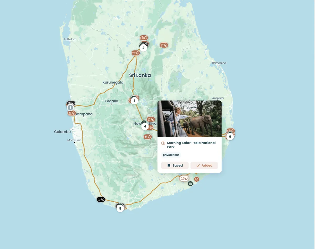 Choose your brand colors and map style. All changes apply instantly across your itineraries.